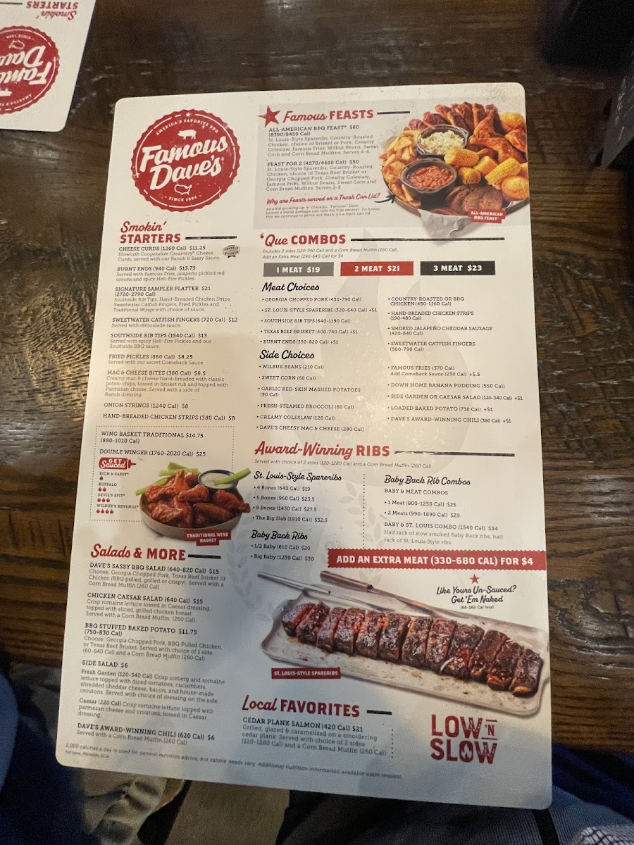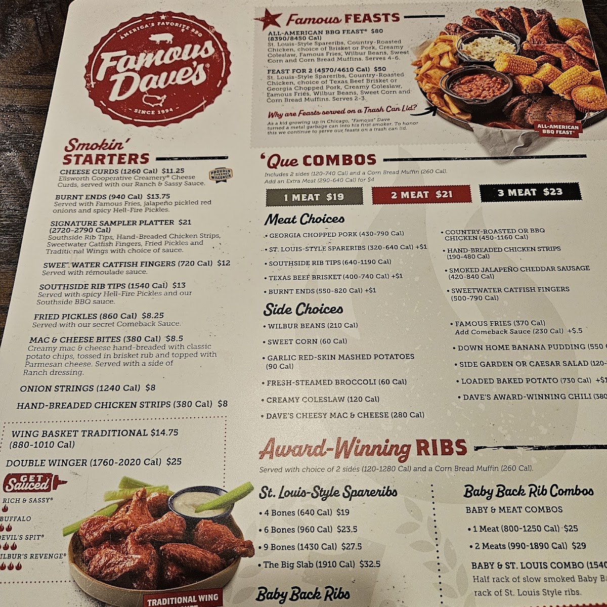 With a reputation for quality and flavor, Famous Dave's is a must-visit for barbecue lovers.